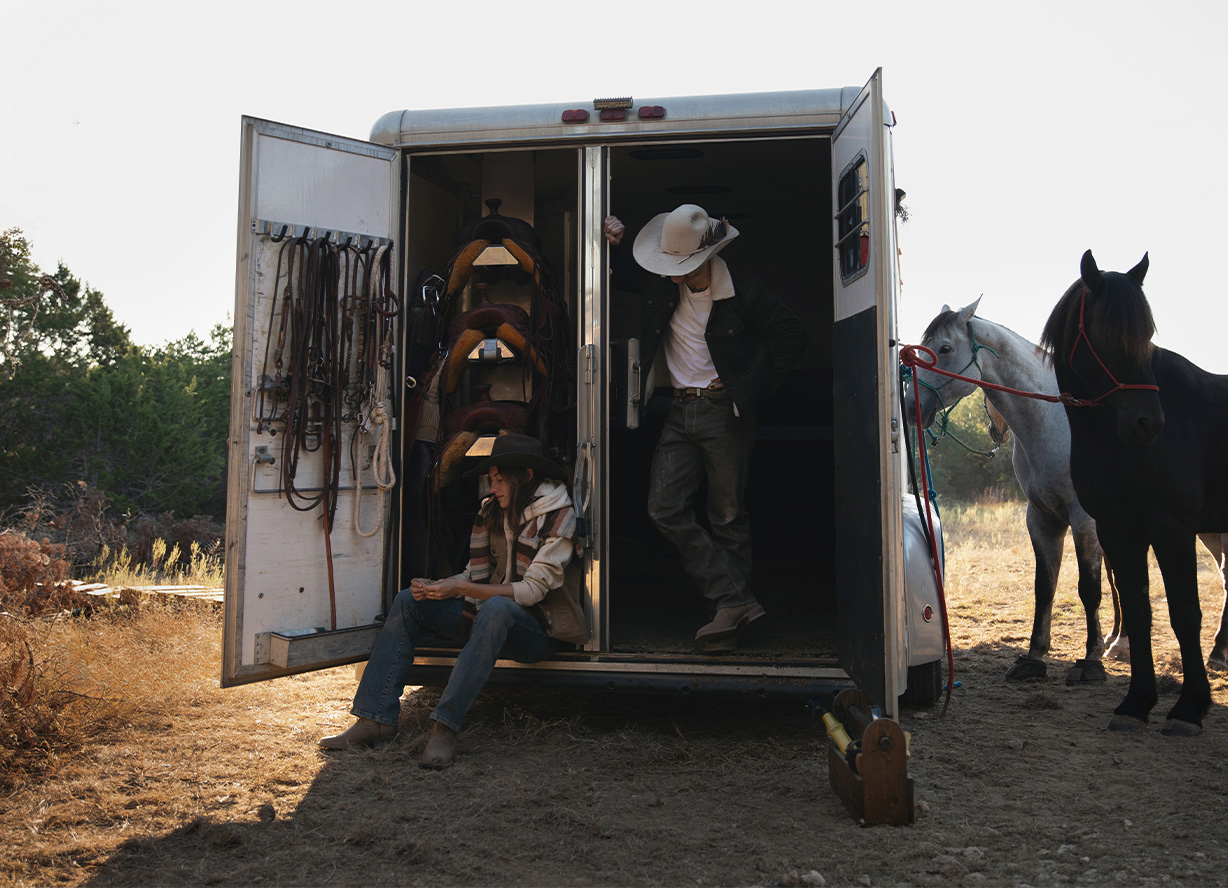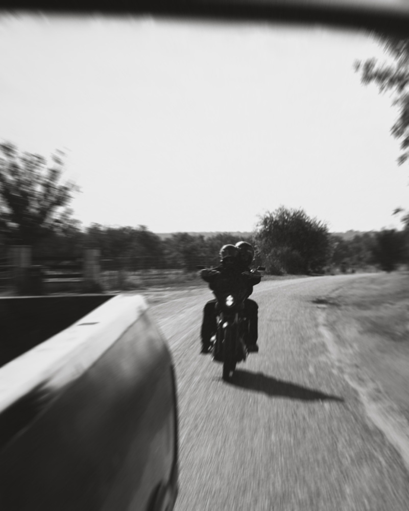 Lights in the rearview mirror. Leavin’ it all behind for something real. Room to breathe. The kind of quiet that fills you up. No going back. No regrets. We found what we were lookin’ for.